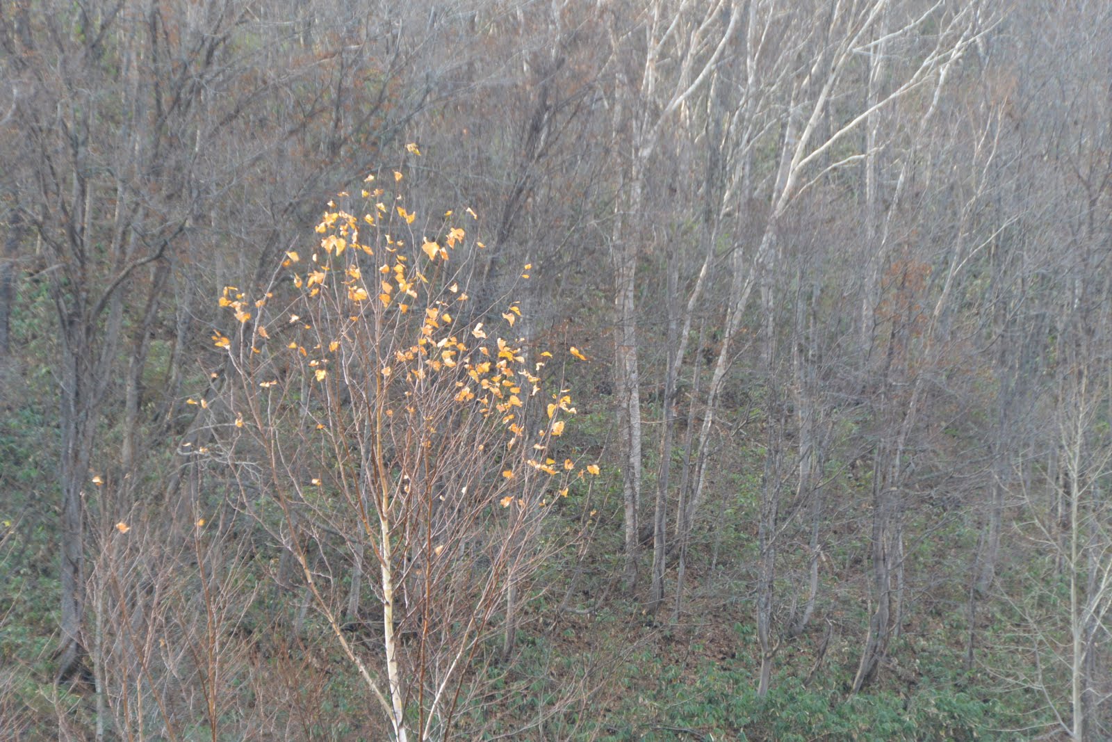 カルデラ外輪山の斜面はほとんどの樹が葉を落としていた。