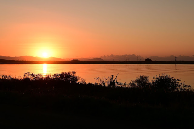 石狩川の河口は左岸を行くと日本海を望むが、右岸は石狩川を挟んで手稲山系へ夕日は沈んでいく。